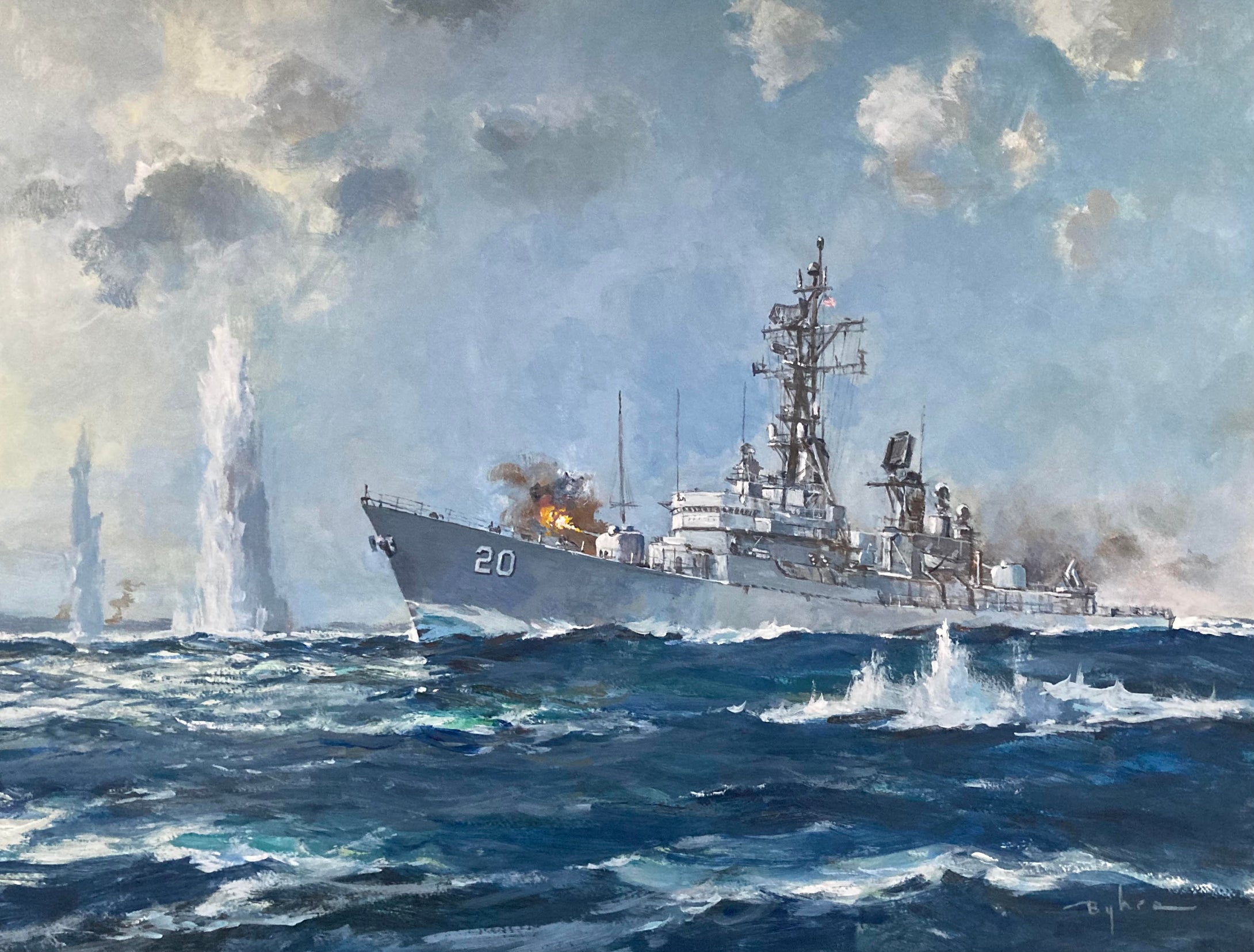 USS Goldsborough DDG-20 engaging hostile gun batteries off the coast of North Vietnam.
