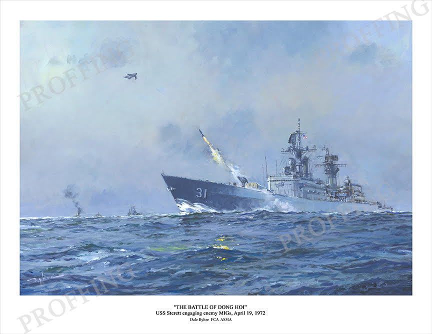 Commemorating the Battle of Dong Hoi, April 19, 1972, when MIG-17’s of the North Vietnamese Air Force attacked US Naval units operating offshore. In the engagement, the destroyer USS Higbee was struck by a bomb and damaged. Firing Terrier missiles, the guided missile frigate USS Sterett DLG-31, successfully downed two of the MIGs.
